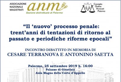 25 settembre 2019 – Incontro dibattito in memoria di Cesare Terranova e Antonino Saetta dal titolo “Il ‘nuovo’ processo penale: […]